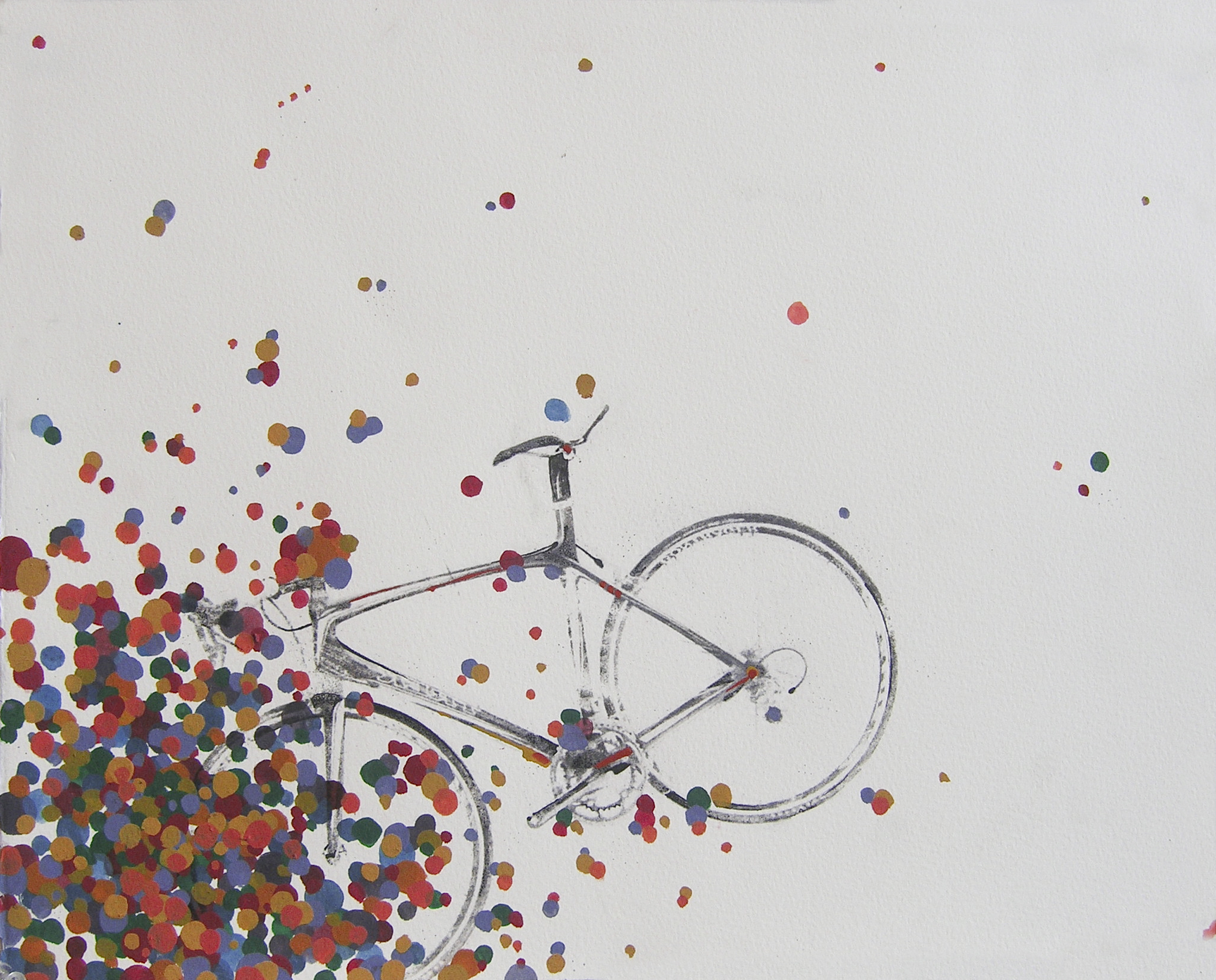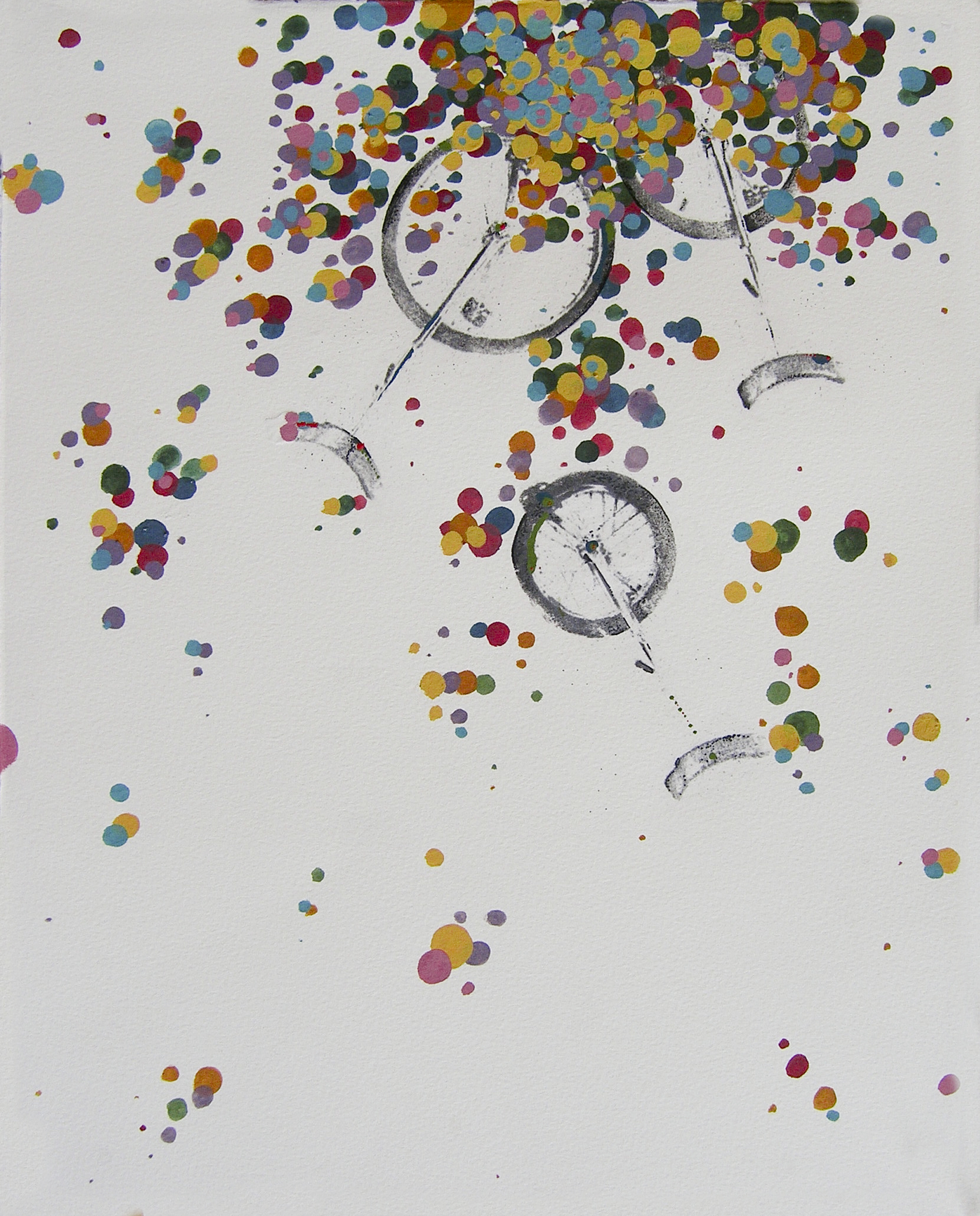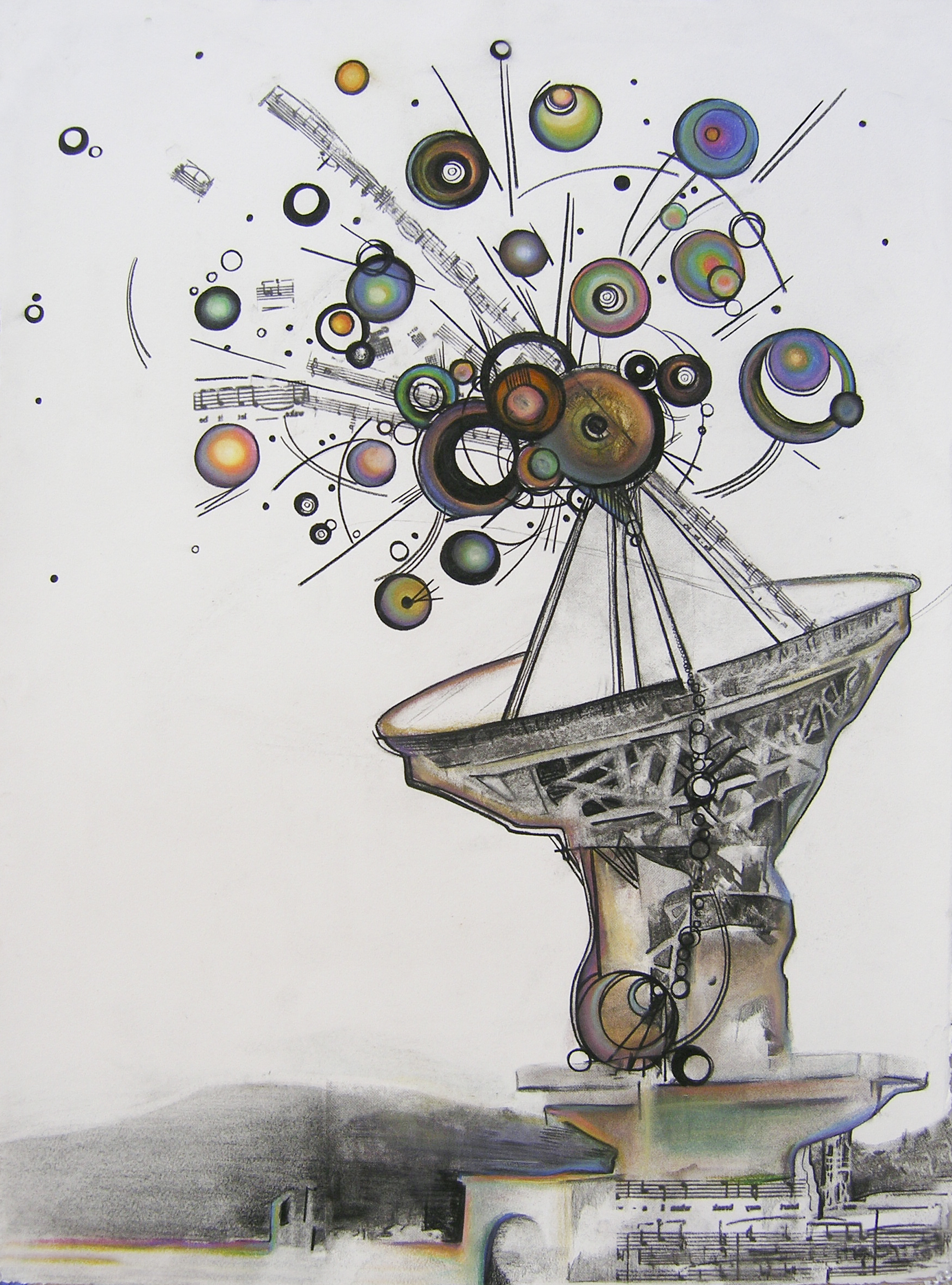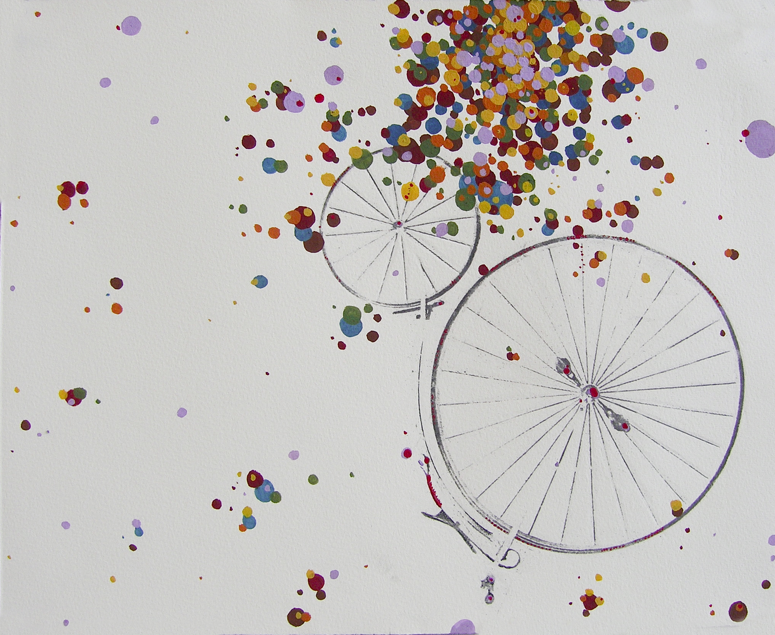 These drawings use the process of photographic transfer printmaking in combination with chalk pastels and graphite. I make laser-jet prints of found and original photographic imagery, and transfer the photos to new paper as a hand-printed mirror image of the original using non-toxic chemicals that strip the surface of the original paper. The result becomes textured hand-made maps, distorted architectural facades, and chaotic landscapes.