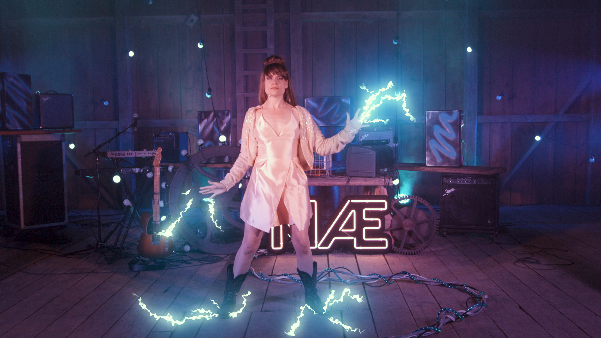I present NÆ in music, music videos, live and virtual performances, virtual reality experiences, and immersive installations. I often exhibit NÆ in intimate spaces – both physical and virtual. These spaces and each NÆ performance within them engages viewers with the meaning of the songs by encouraging interaction. I have presented this work in interactive installation rooms, public library engagement events, art galleries, concert venues, in a video game, and on live-streaming platforms. Through interaction, I challenge the viewer/listener to reflect upon their own status and power.